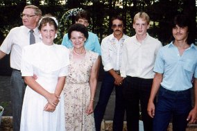 Tyler, Rachel, Tommy and Becky, Skiatook, OK Grandkids in Skiatook Tyler, Cathy and Rachel Meghan and Patrick Tyler, Rachel, Patrick and Cathy at Brookfield Zoo Bill, Kay and Billy Patrick, Gertsie, Rachel and Merry Beth Helen, Rachel, Reg and Tyler after Kays wedding l-r, Reg and Tyler Reedy, Tommy Reedy, Jimmy Barrett and Patrick. Rachel Reedy and Mae Reedy, in front Naperville Settlement, Rachel, Cathy, Helen, Tyler and Reg Patrick, Rachel and baby Carrie 19851987